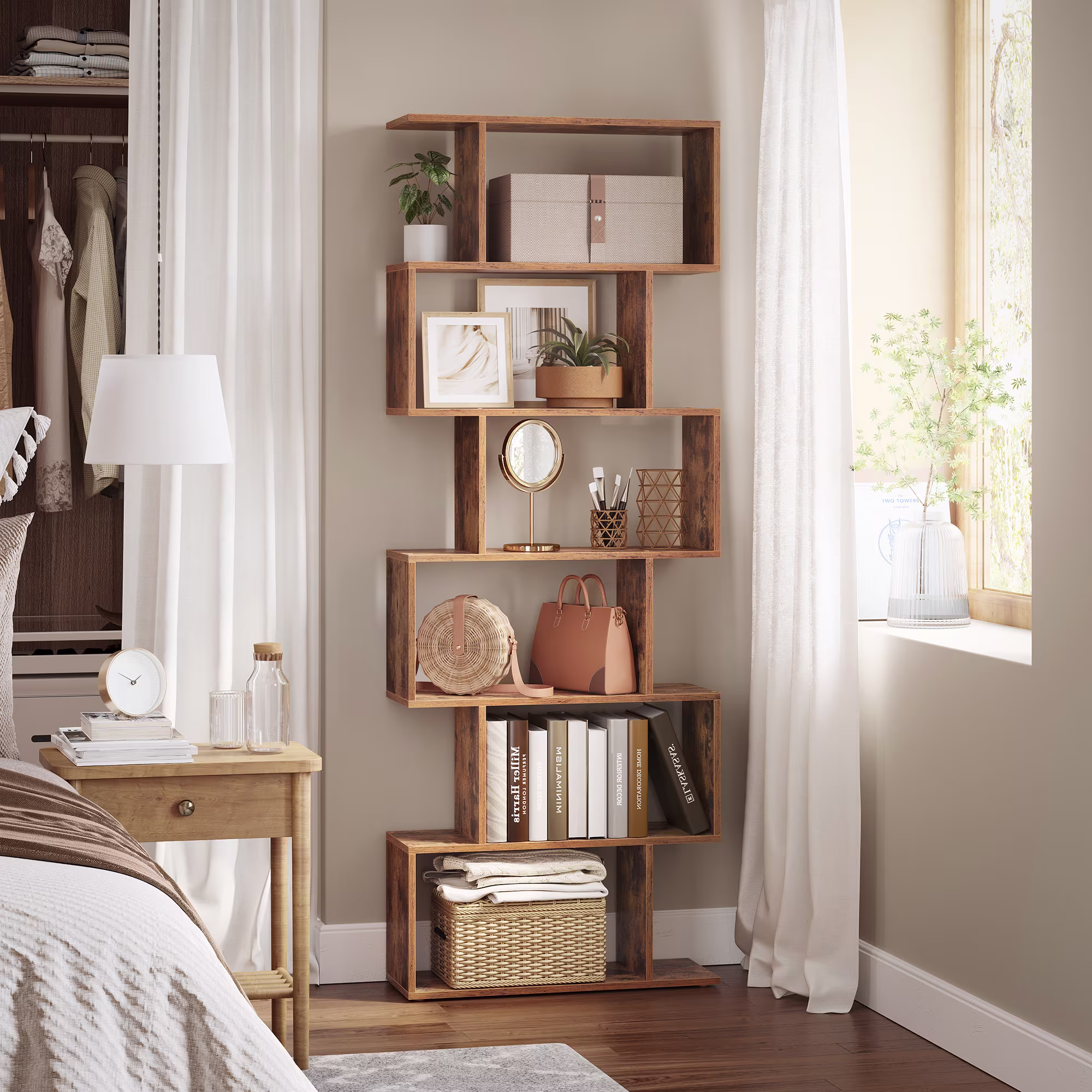 Étagère à 6 niveau style moderne effet bois marron rustique