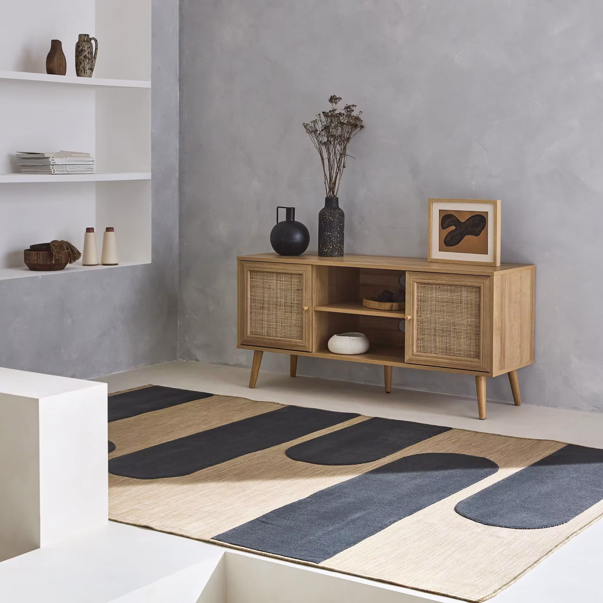 Linear – Meuble tv décor bois de noyer, 2 portes coulissantes