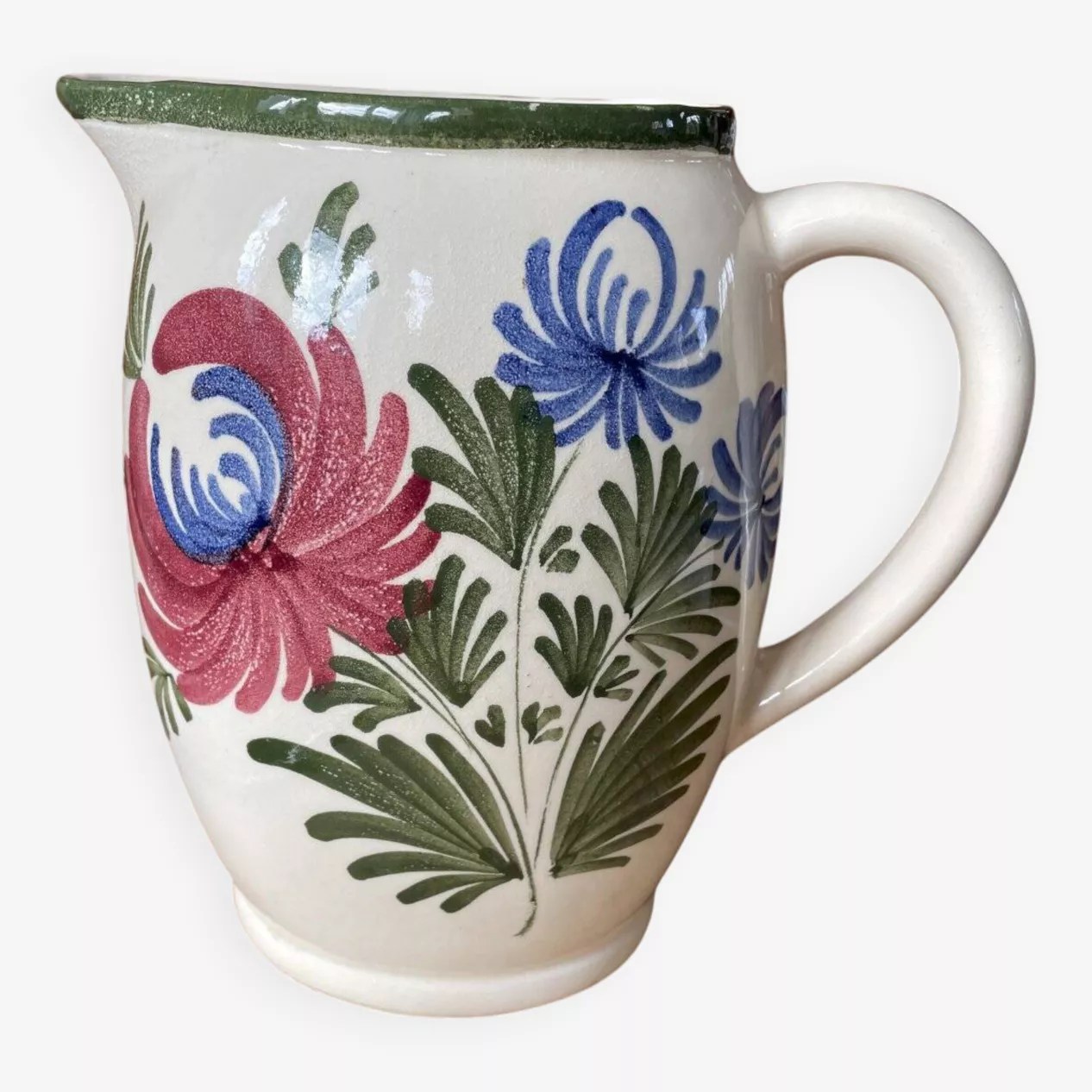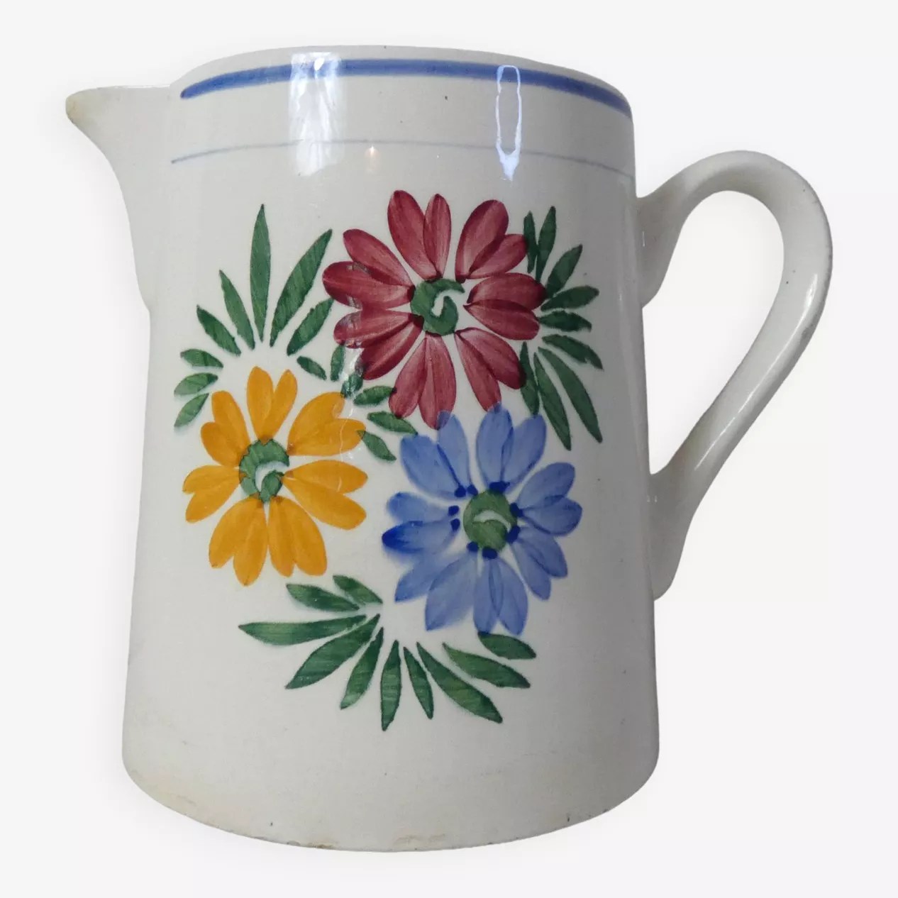 Assiette ancienne en barbotine fleurie peinte à la main chez Sélency