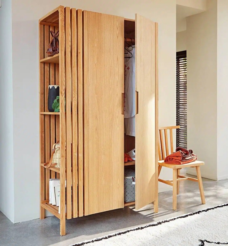 - Gain d’espace visuel : l’absence de portes crée une impression de légèreté et évite l’effet massif d’une armoire fermée.