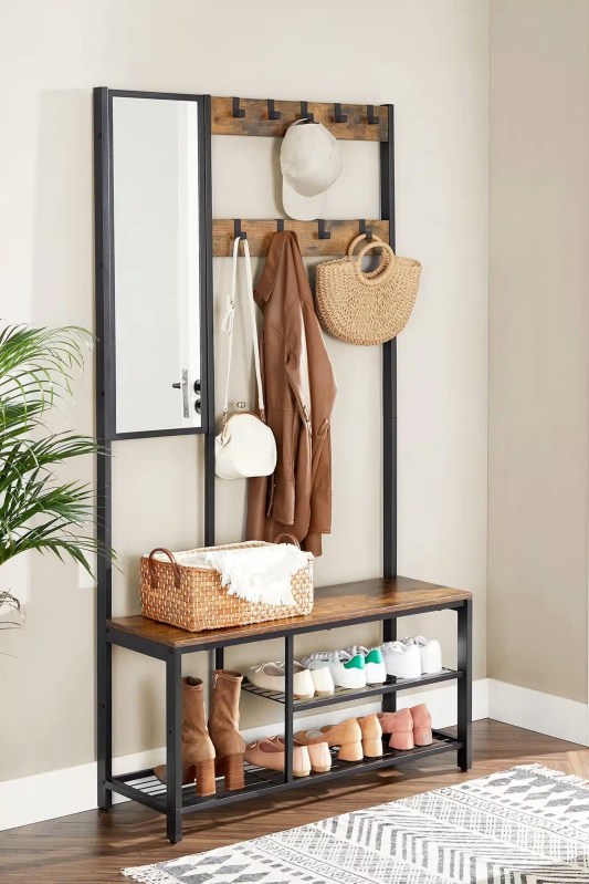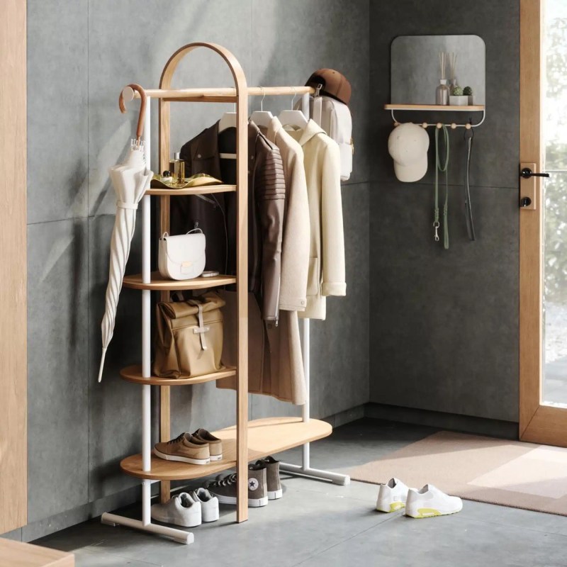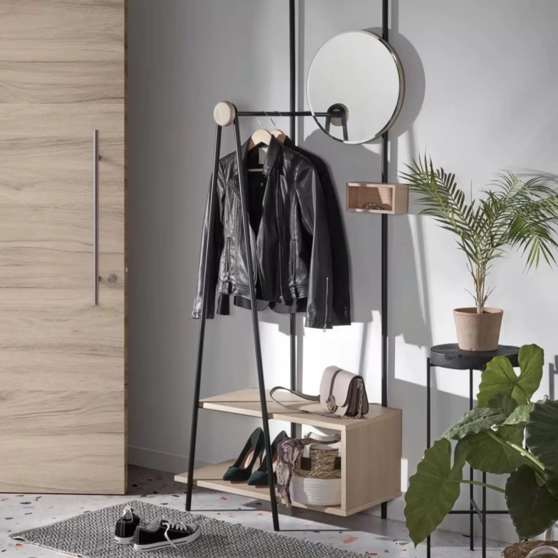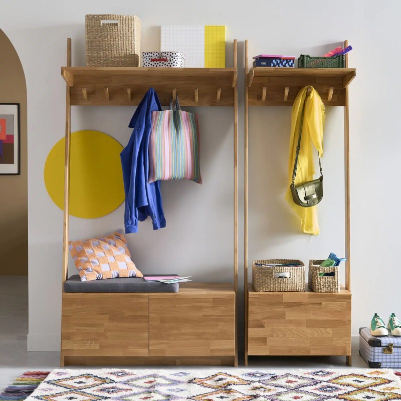 👉 Astuce déco : ajoutez des paniers ou boîtes de rangement sur les étagères pour regrouper écharpes, bonnets ou gants, tout en donnant du style à l’ensemble.