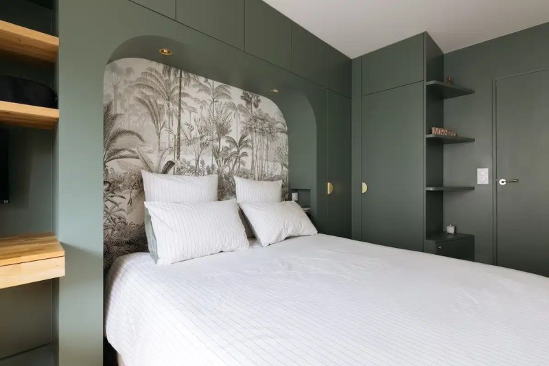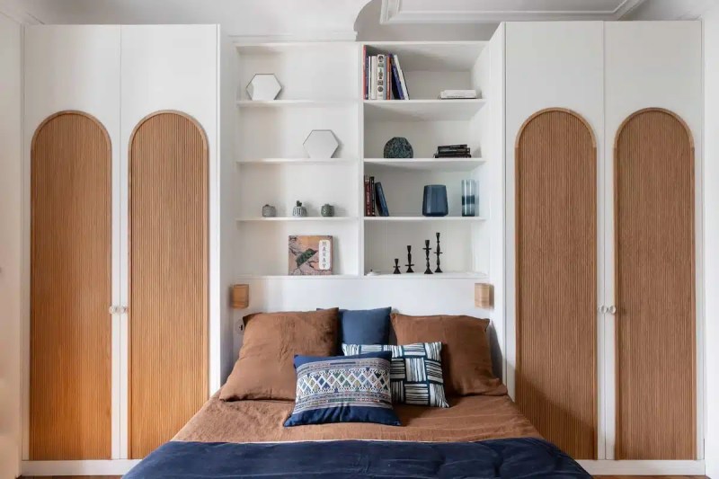 • Prévoir une niche ou une tête de lit ouverte pour garder quelques objets déco accessibles.