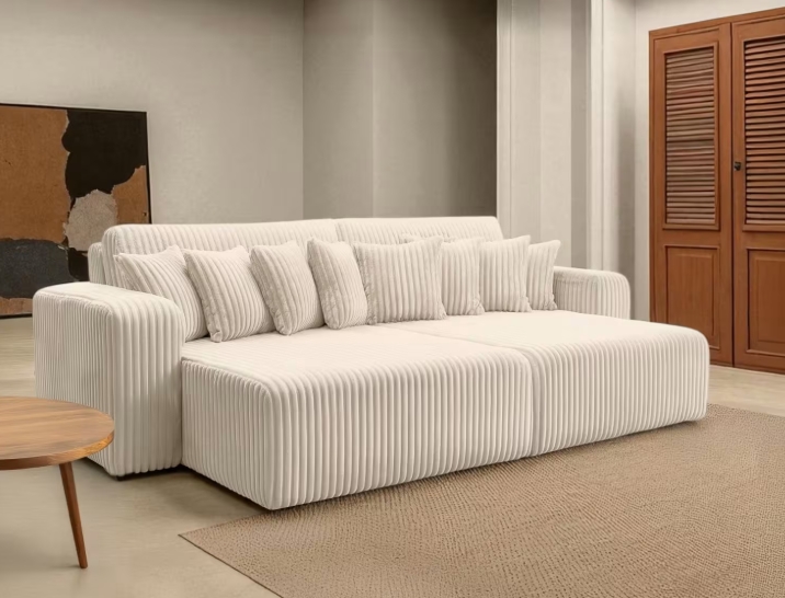 Usinestreet – Jade – Canapé droit 4 places double méridienne velours côtelé épais beige 699,00 €