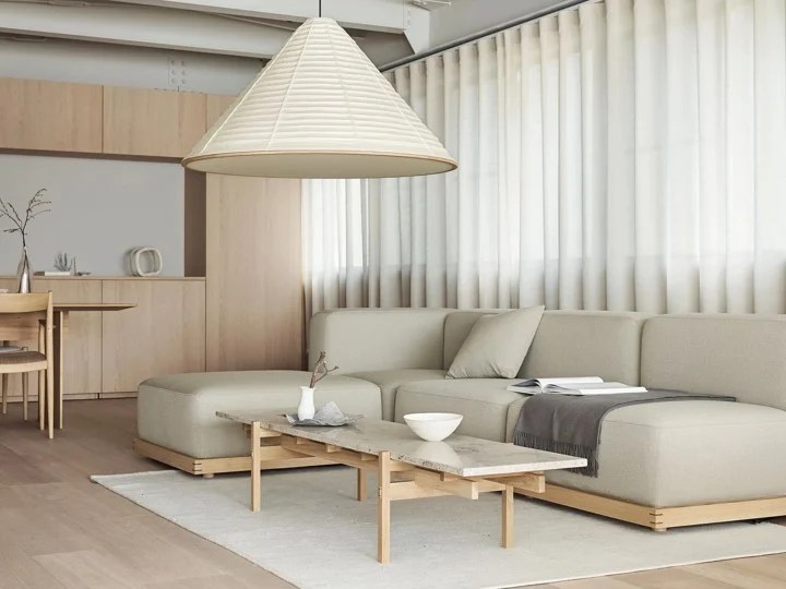 Le canapé modulable N-S02 | Canapé modulable est constitué d’une base en bois massif et d’un rembourrage souple. Les coussins arrondis invitent l’utilisateur à entrer dans son univers tandis que la structure en bois avec des détails de menuiserie artisanale exquis complète le design et souligne un héritage de production si unique à KARIMOKU, Japon.Achiproducts