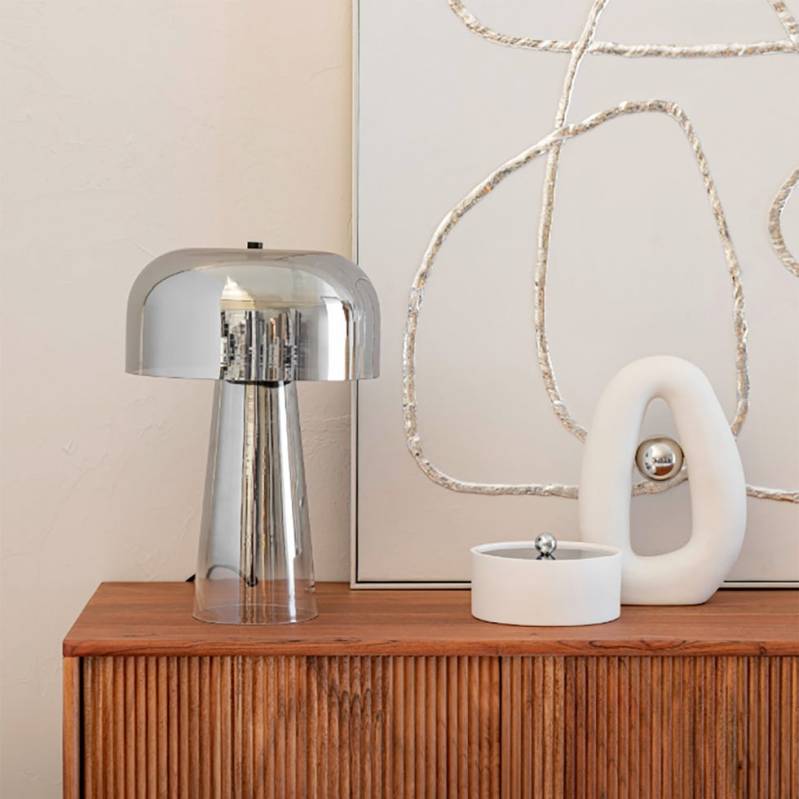 Cette lampe champignon en laiton apporte immédiatement une note élégante au bureau. On aime son format compact qui trouve facilement sa place, même sur un petit plateau en verre. Elle diffuse une lumière douce, parfaite pour travailler sans éblouir, et reste assez discrète pour se fondre dans la déco sans surcharger l’espace.