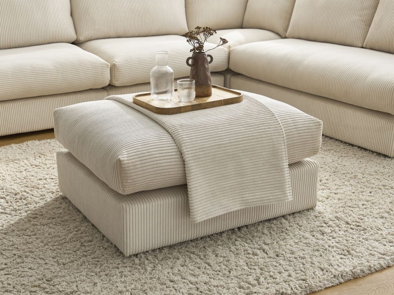 JEANNE Canapé d’angle fixe modulable tissu velours avec 2 chauffeuses, 1 angle et 2 poufs