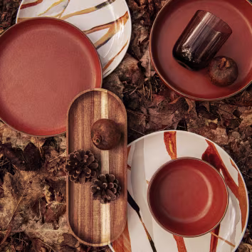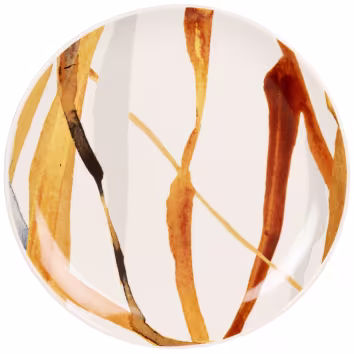 Brodie – Lot de 2 – Assiette plate en céramique blanche motifs jaunes, marron, verts