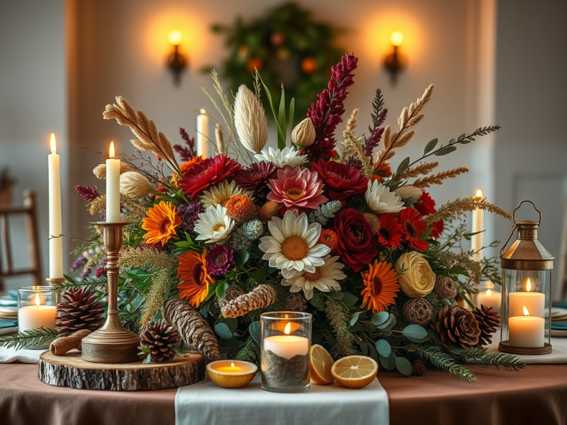 - Bouquets de fleurs fraîches ou séchées selon la saison.