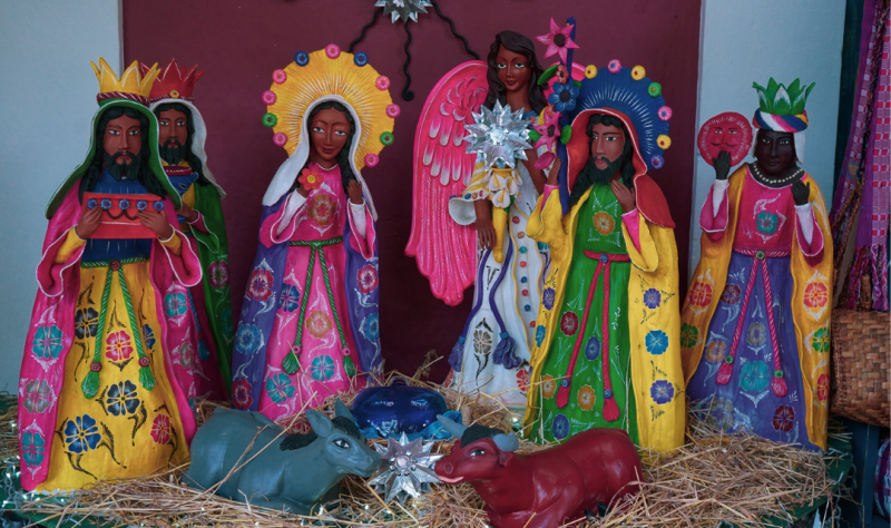 - Décorations : guirlandes colorées, lanternes en forme d’étoile (“piñatas”), crèches vivantes.