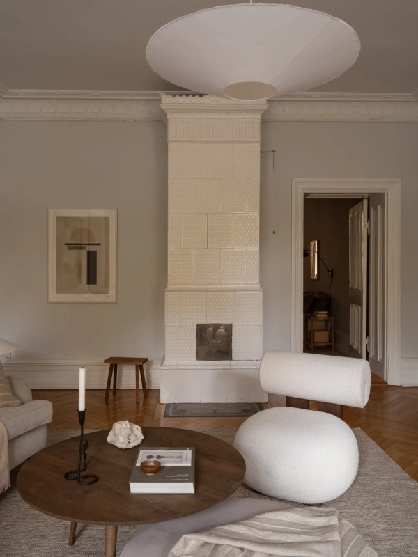 Un magnifique salon aux détails classiques du début du XXe siècle, tels qu’un poêle en faïence, de hauts plafonds, de superbes stucs et de profondes niches de fenêtres. Le poêle en faïence confère à la pièce une atmosphère élégante et chaleureuse, tandis que les grandes fenêtres laissent entrer une abondante lumière naturelle. Le beau parquet souligne le caractère raffiné de la pièce.