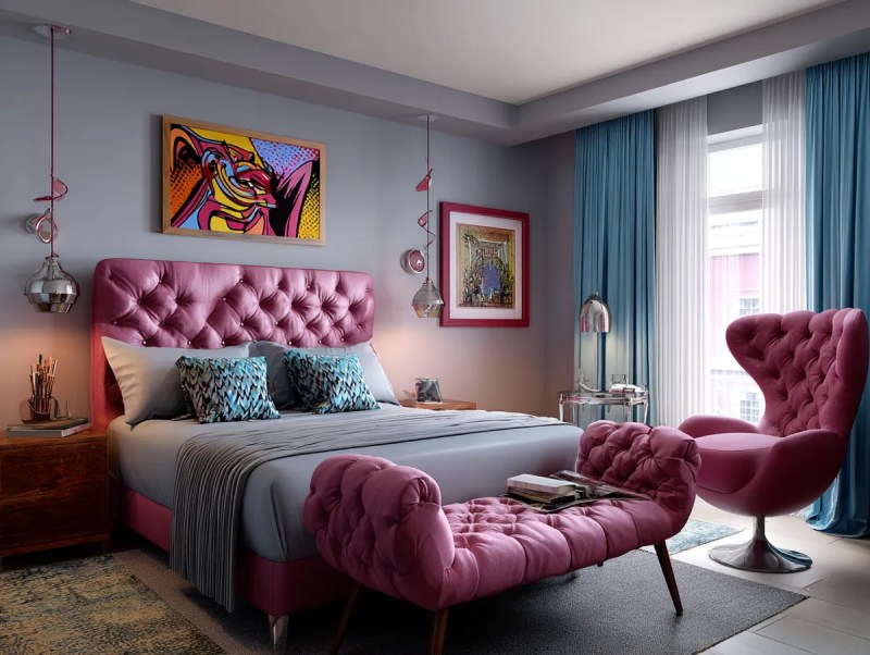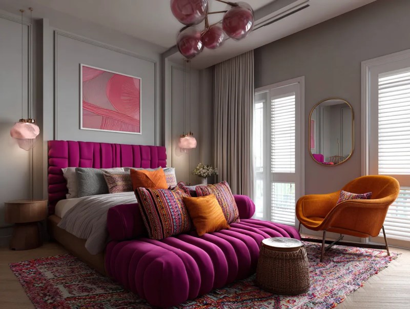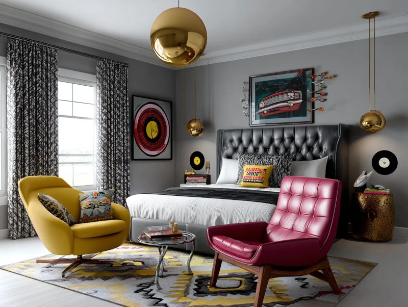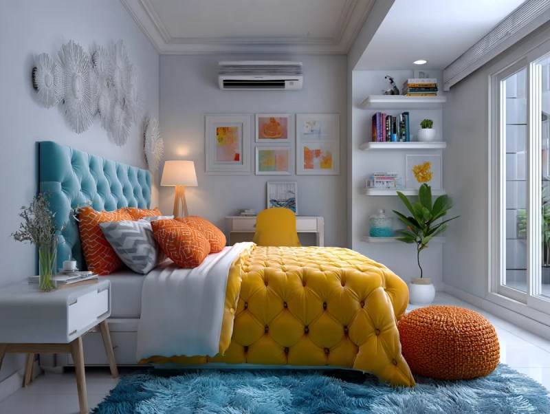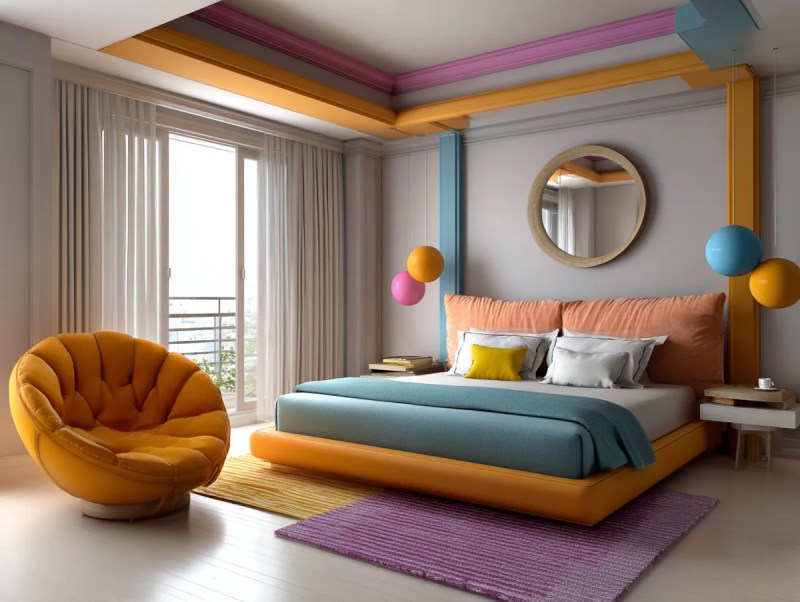 Chambre à coucher au design d’intérieur pop avec des accents vibrants