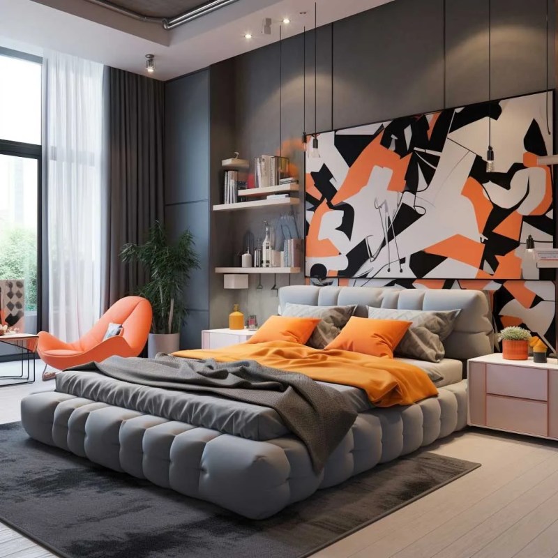 Les accents vibrants sont l’élément vital de la décoration intérieure pop. Ce sont les éclaboussures de couleur qui brisent la monotonie, les motifs inattendus qui attirent l’œil et les pièces de décor uniques qui racontent une histoire. Dans une chambre à coucher pop au design d’intérieur, ces accents ne sont pas seulement des éléments décoratifs ; Ce sont des déclarations d’individualité et de style.