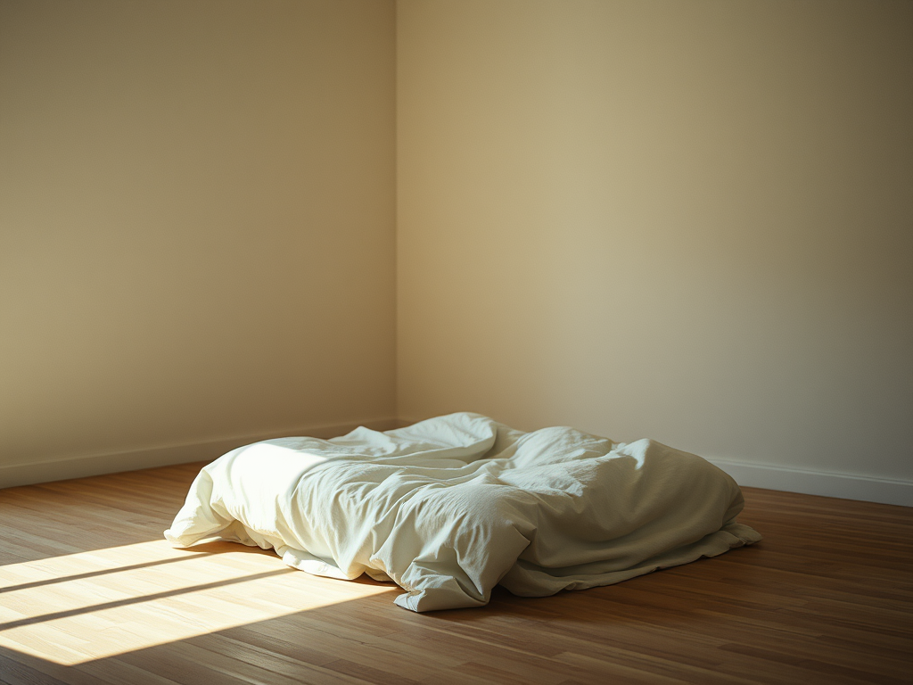 Pas de rideaux en dentelle, pas de roses dans un vase — juste la lumière du matin qui glisse sur un drap froissé.