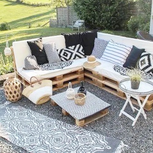 - Canapé en palettes – le plus simple et économique. Style rustique ou bohème.