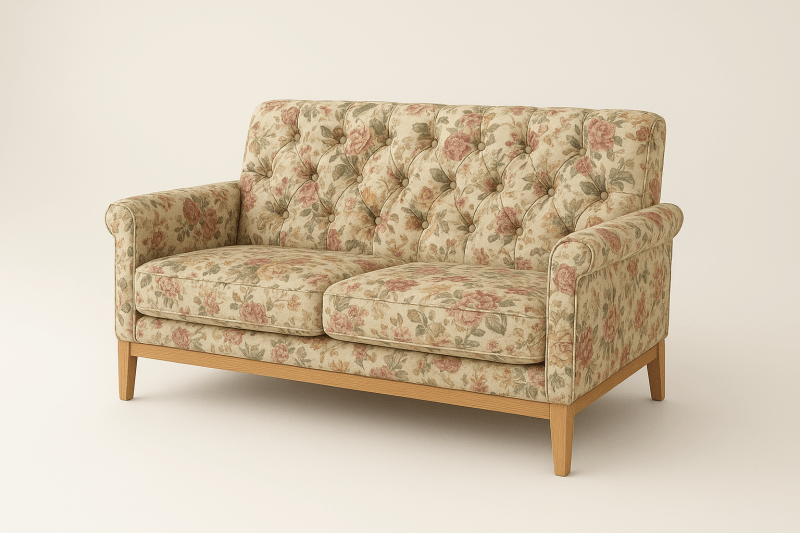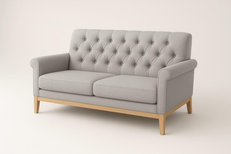 Le canapé capitonné / rembourré donne un style chic et confortable — parfait pour un salon ou un coin lecture.