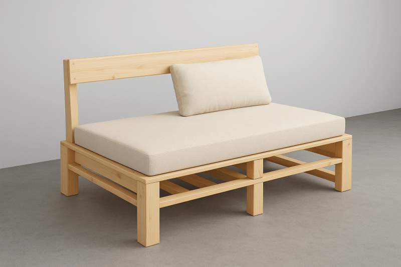 - Canapé à structure en bois – un peu plus technique, mais résultat plus solide et élégant.