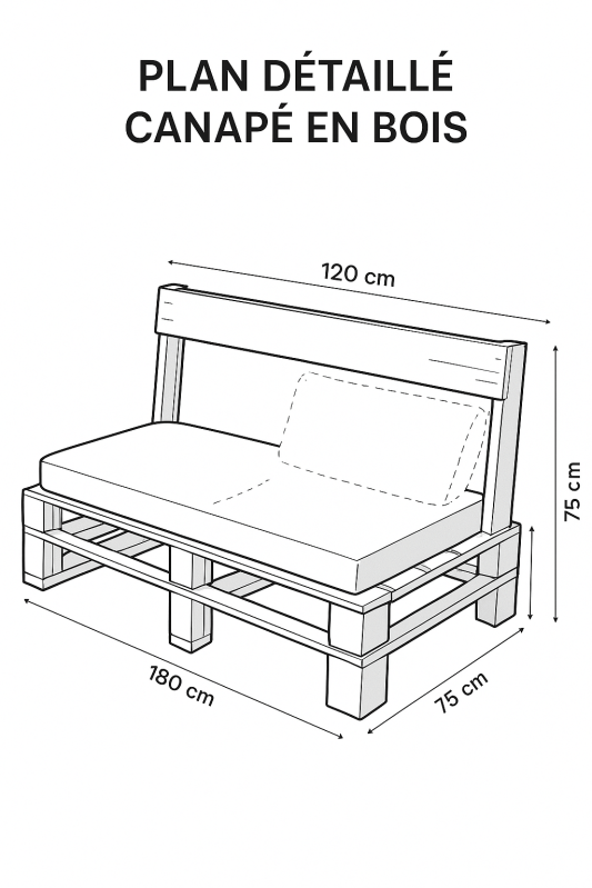 🧱 ÉTAPE 3 : Construction de la structure (exemple : canapé en bois 2 places)