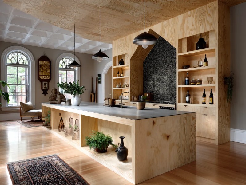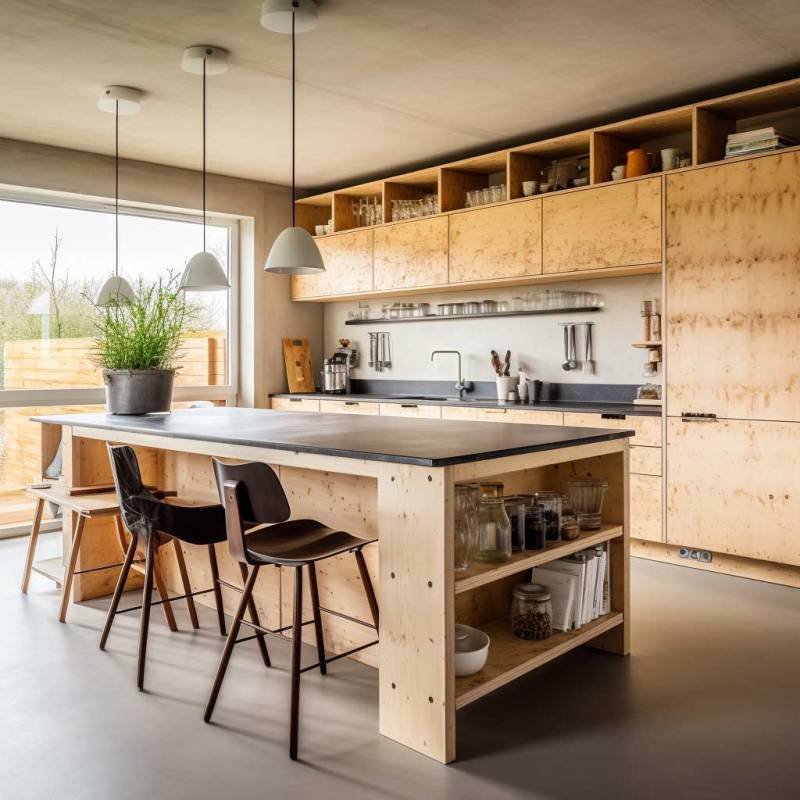 Le contreplaqué, souvent considéré comme un matériau modeste, a trouvé sa place de choix dans l’univers des cuisines haut de gamme. Sa polyvalence, sa durabilité et son caractère écologique en font un matériau de prédilection pour les designers et les particuliers. Intégré à une cuisine, le contreplaqué apporte une touche chaleureuse et naturelle, contrastant harmonieusement avec les appareils électroménagers en inox et les plans de travail en marbre. De plus, l’utilisation du contreplaqué dans les aménagements modernes ne se limite pas à l’esthétique. Elle est aussi fonctionnelle. Les cuisines modernes privilégient l’optimisation de l’espace et l’efficacité. Les meubles en contreplaqué, avec leurs surfaces lisses et leur absence de détails ornementaux, sont faciles à nettoyer et à entretenir. Ils offrent également un espace de rangement généreux, permettant ainsi de garder les plans de travail dégagés.