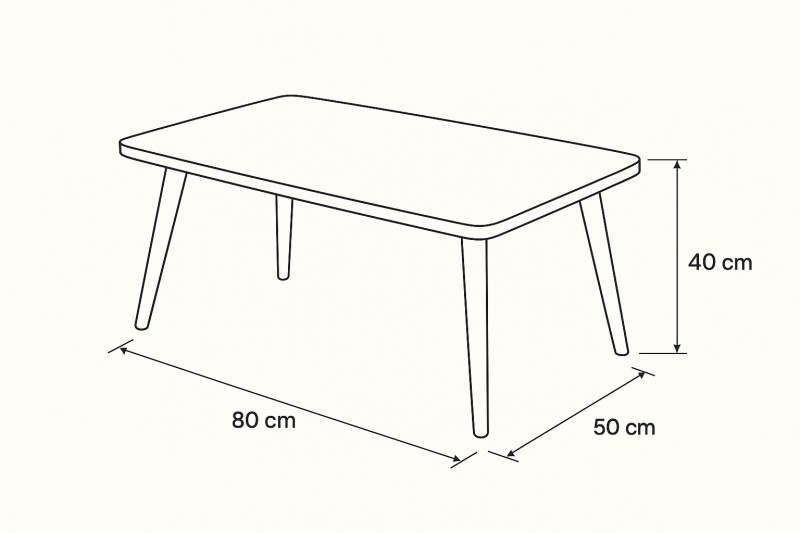 - 1 plateau en bois clair (pin, frêne ou bouleau) – 80×50 cm