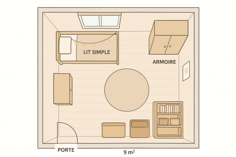 🗺️ PLAN D’AMÉNAGEMENT SIMPLE (9 m²)