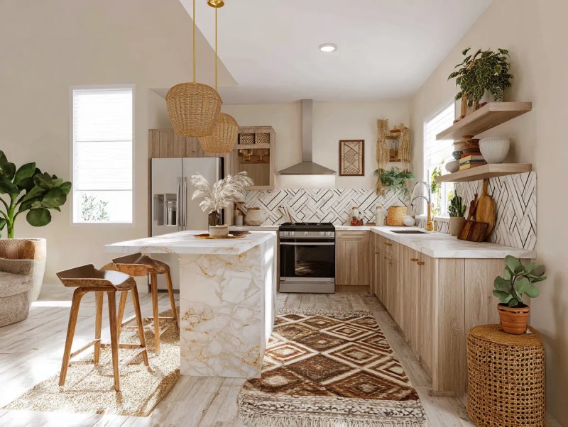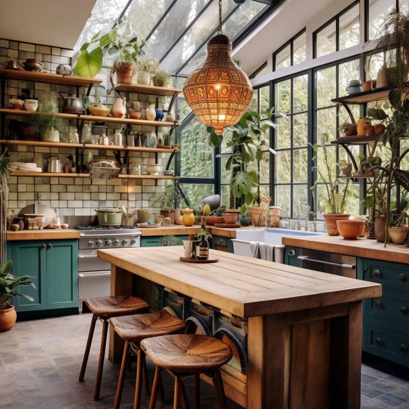 Les cuisines au style bohème se distinguent, offrant un mariage harmonieux entre charme éclectique et fonctionnalité contemporaine. Pour les propriétaires à l’esprit libre, ce style promet un espace à la fois esthétique et profondément apaisant.