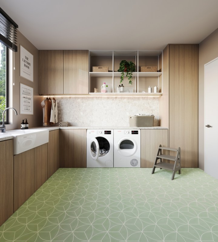 Les motifs audacieux du vinyle apportent non seulement une touche esthétique, mais aussi une fonctionnalité appréciable. Ce matériau résistant est facile à nettoyer et à entretenir, ce qui en fait un choix à la fois élégant et pratique pour le sol d’une cuisine.