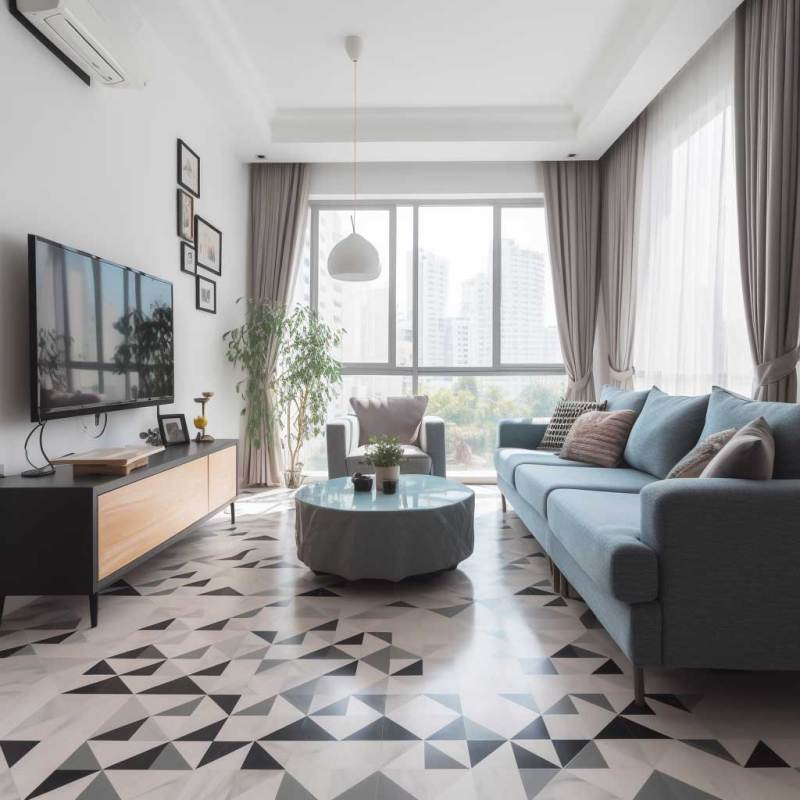 Adoptez la simplicité audacieuse des formes avec un mobilier géométrique moderne. Idéales pour un salon spacieux, ces pièces créent un point focal dynamique qui incarne l’élégance, le confort et le style contemporain. Le mobilier moderne aux lignes géométriques est harmonieusement associé à une sélection judicieuse d’accessoires et d’objets de décoration. Tapis, lampes et tableaux contribuent à l’atmosphère de la pièce, mettant en valeur le mobilier et créant un ensemble cohérent.
