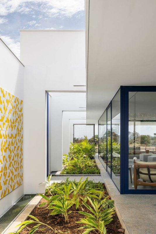 située à Brasília, au Brésil, comme une galerie d’art à part entière. Ce concept permet aux résidents de vivre au cœur d’une œuvre d’art qui abrite également leur collection. L’une des caractéristiques les plus originales de la maison réside dans sa charpente. Cinq imposantes poutres inversées soutiennent avec élégance un toit de 12 mètres de large, créant ainsi l’espace central de la maison, baptisé « la galerie ». Cet espace, qui brouille les frontières entre art et vie quotidienne, est multifonctionnel : il comprend un salon, une salle à manger, une cuisine, un balcon et un garage.