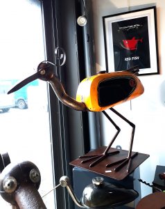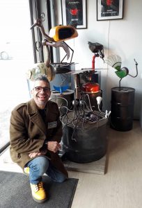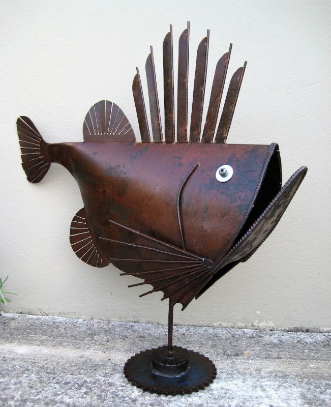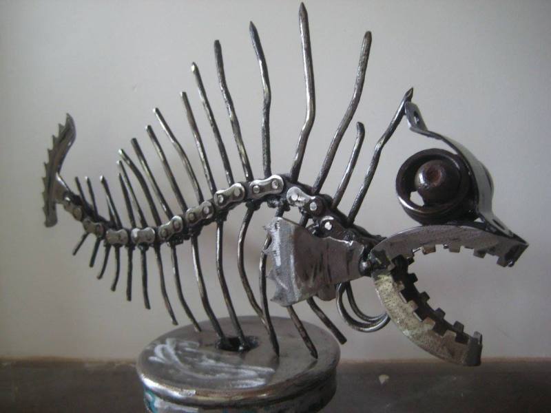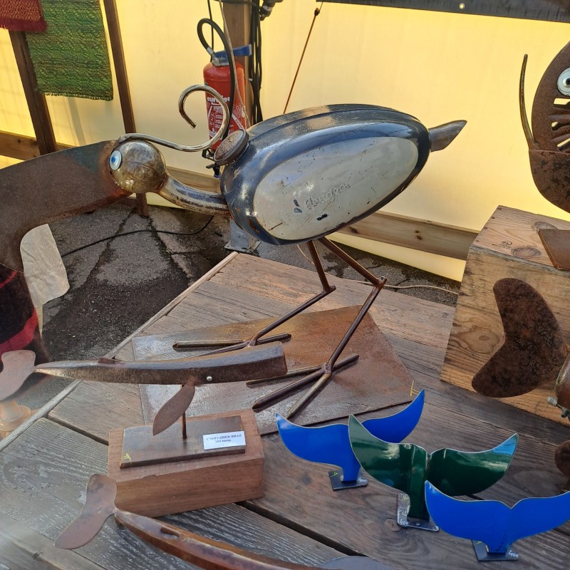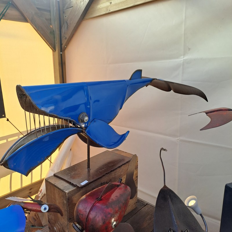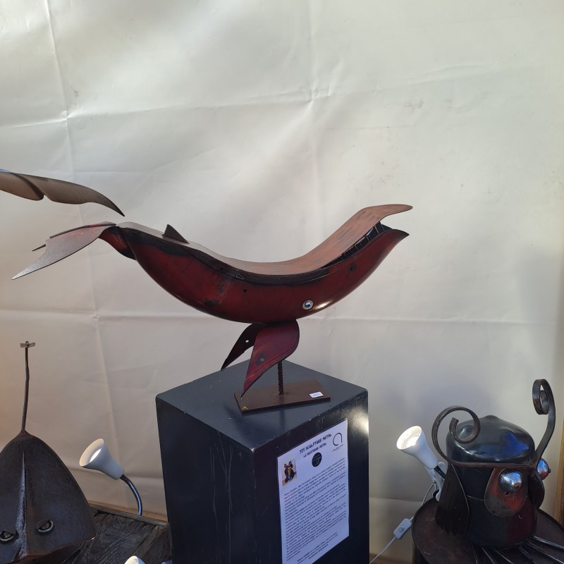 Son travail s’inscrit dans la création d’un Bestiaire métal, un monde où oiseaux, poissons et insectes émergent de la matière brute. Ces sculptures semblent suspendues entre force et fragilité, entre rigueur industrielle et élan organique. Chaque pièce est unique, porteuse de traces, de soudures visibles et de silences métalliques.