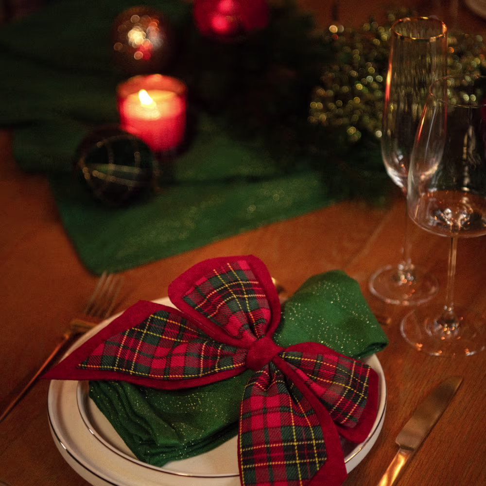 Les nœuds en velours ou satin (rouge, bordeaux ou neutre) sont la star ! Accrochez-les sur le sapin, les poignées de portes, les cadeaux ou même en guirlande.