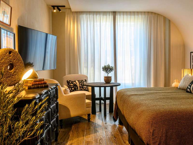L’expérience ne se limite pas aux 38 chambres et 11 suites de l’hôtel. Cave de dégustation, restaurant gastronomique, bar à cocktails et spa viennent enrichir l’offre, mettant à l’honneur les produits du Domaine de Leos, autre projet emblématique porté par Patrick Bruel. Ici, le luxe se veut intimiste, élégant et profondément ancré dans son terroir.