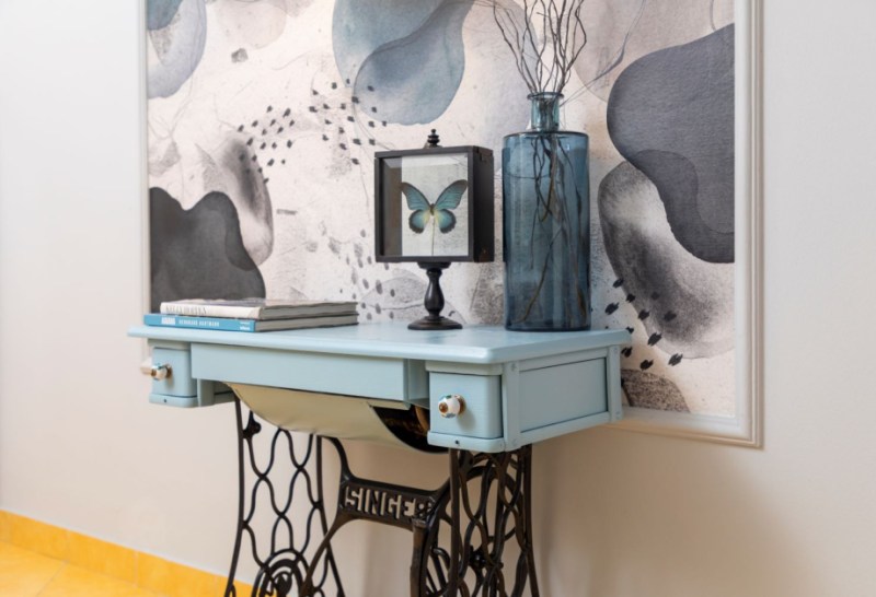 De vieilles machines à coudre comme elles sont très populaires et de plus en plus de personnes décident de les intégrer à leur intérieur. La première étape consiste à poncer et retirer les anciennes poignées des tiroirs. Vous pouvez laisser les poignées, et les remplacer par des modèles un peu plus efficaces qui mettent en valeur le style vintage.