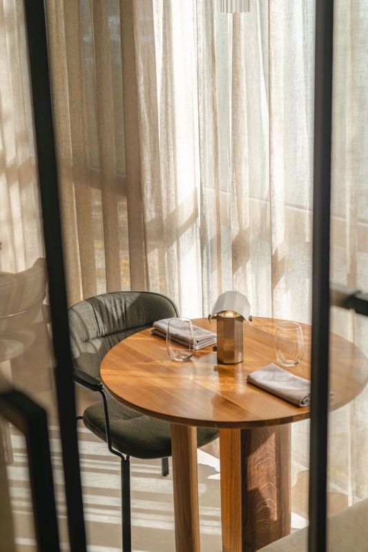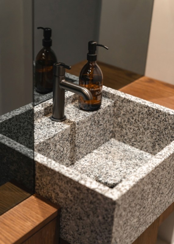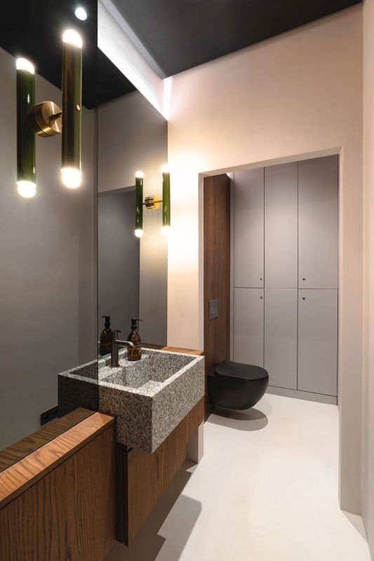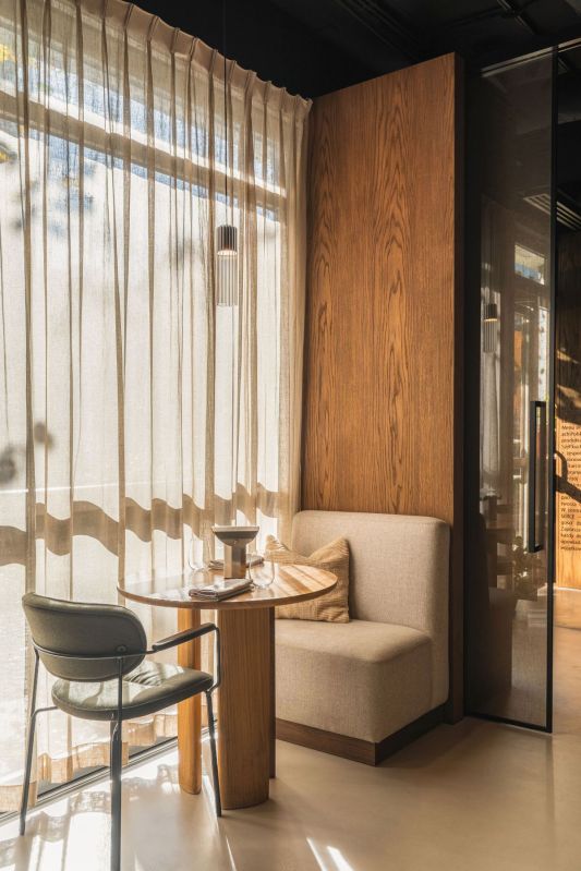 Les tables en chêne massif ont été réalisées sur mesure par la manufacture In Wood We Trust, tandis que les chaises, dessinées par Nikodem Szpunar, proviennent de la marque Noti. L’espace bar est équipé de robinetterie Deante (robinet et évier de cuisine Olfato), et dans les toilettes, un robinet de lavabo Silia du studio Deante Design a été sélectionné, alliant fonctionnalité et harmonie esthétique.