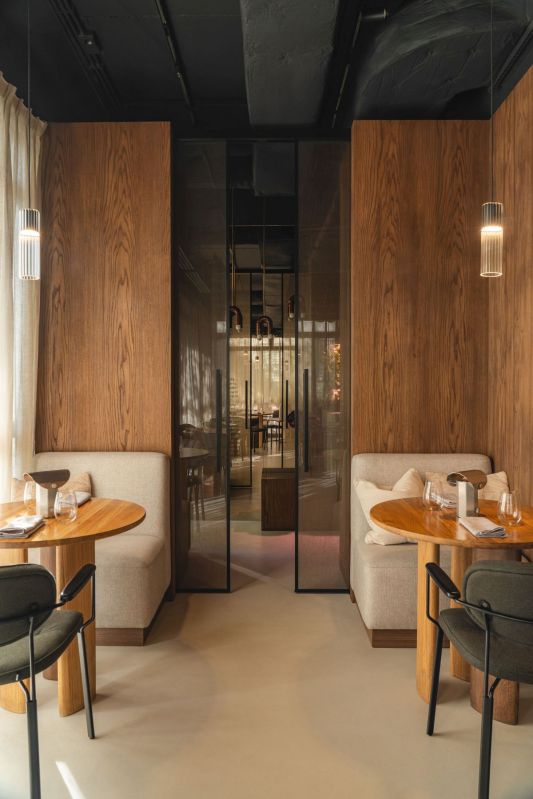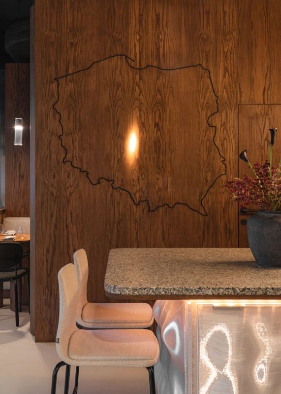 Situé au cœur du quartier Powiśle de Varsovie, rue Wiślana, le restaurant « Bez Gwiazdek » a subi une transformation qui fusionne la tradition culinaire polonaise et le design contemporain. La conception intérieure et la supervision complète du projet ont été assurées par Mariola Kowalska et Gabriela Radwanowska de Studio Rysik. Le studio a créé un espace où l’architecture n’est pas un simple décor, mais une partie intégrante de l’expérience. Cette métamorphose a été réalisée en seulement trois semaines, dans le strict respect du budget et malgré des conditions acoustiques difficiles, typiques d’un immeuble de bureaux.
