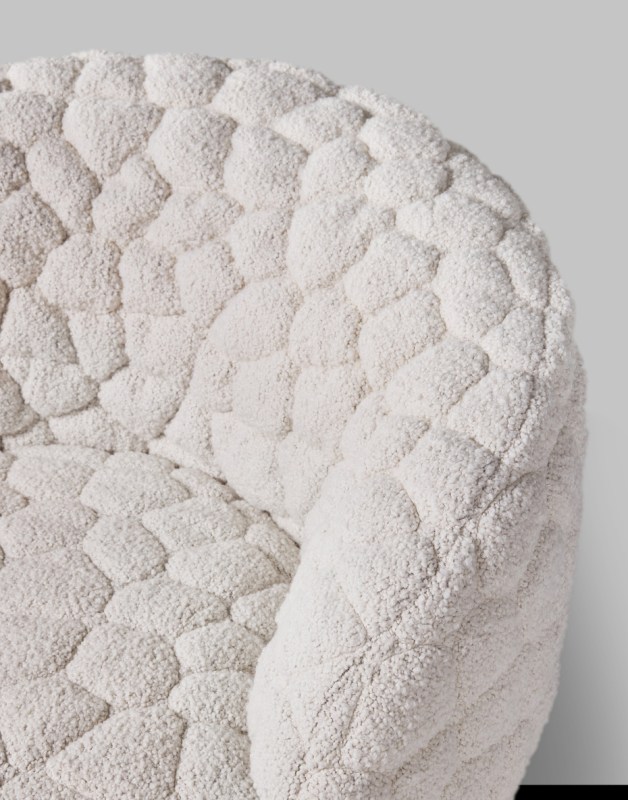 Avec ses formes douces et sculptées et sa structure en bois généreusement rembourrée, dotée d’un pivot discret, le fauteuil Introvert procure une sensation d’enveloppement réconfortant. Son tissu signature – un mélange tactile de laine vierge, d’alpaga et de coton – est confectionné dans une chaude teinte ivoire apaisante. Chaque housse est cousue individuellement grâce à une technique de matelassage 3D innovante, transformant la surface en un jeu sculptural de textures et de lumière. Des coussins assortis, disponibles en option, vous invitent à vous installer confortablement et à ajuster votre position selon vos envies. Avec ses courbes enveloppantes et sa silhouette discrète, le fauteuil Introvert est une invitation à la sérénité.