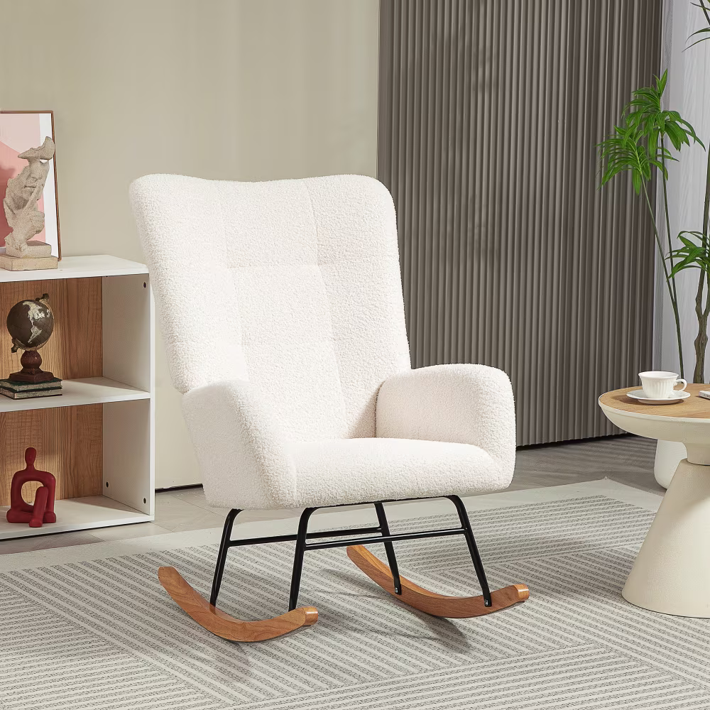 Homcom – Fauteuil bascule style nordique haut dossier bois effet laine boucléeSquash – Fauteuil bouclettes écrues