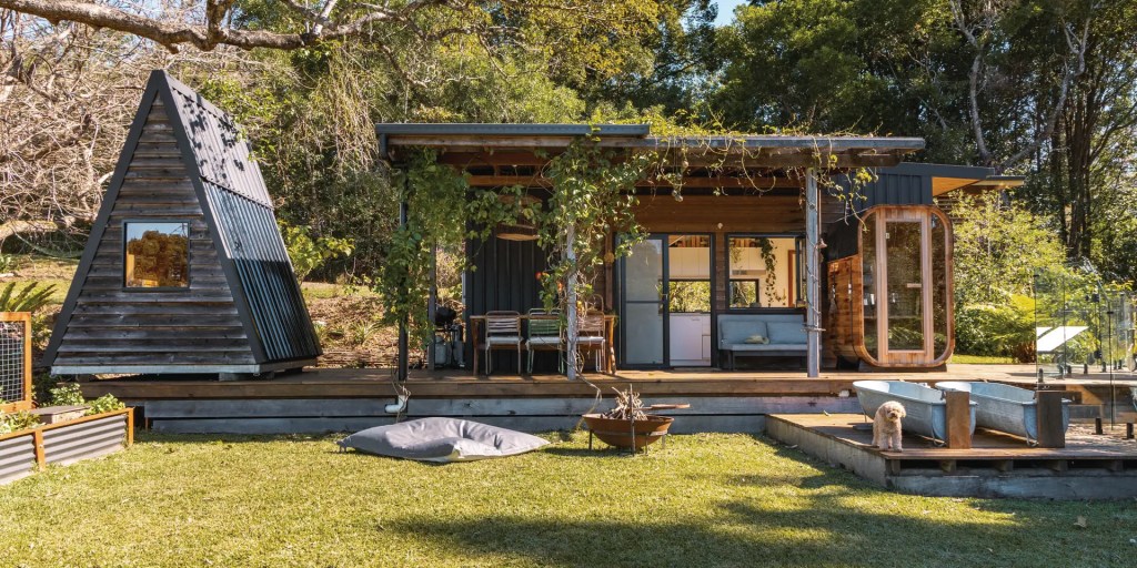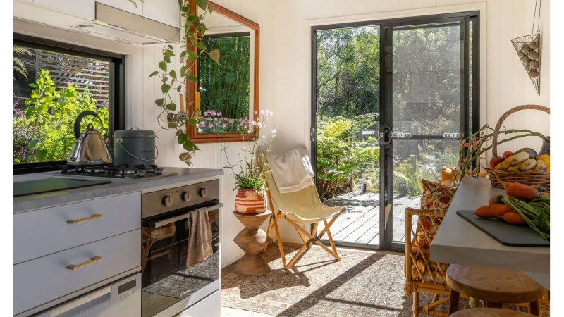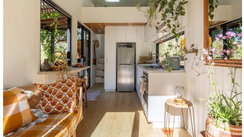Sophie Kovic a elle-même conçu la tiny home avec l’aide d’Aussie Tiny Houses, qui a également construit la structure principale. Avec un peu plus de 17 mètres carrés, la maison comprend une cuisine, une salle de bain et un escalier menant à une chambre mezzanine.