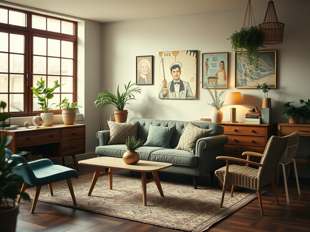 - Table basse épurée (livre + plante)
