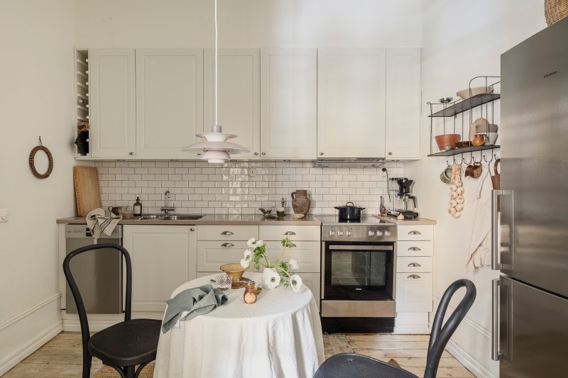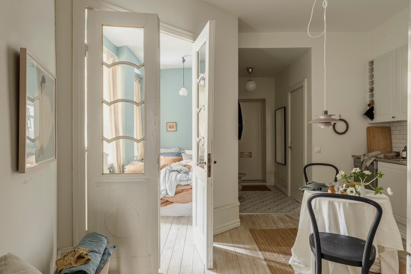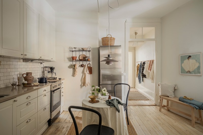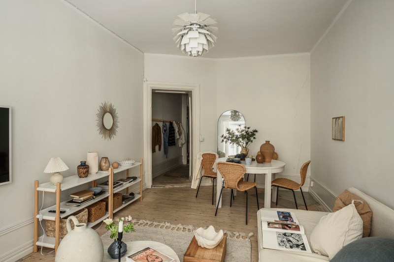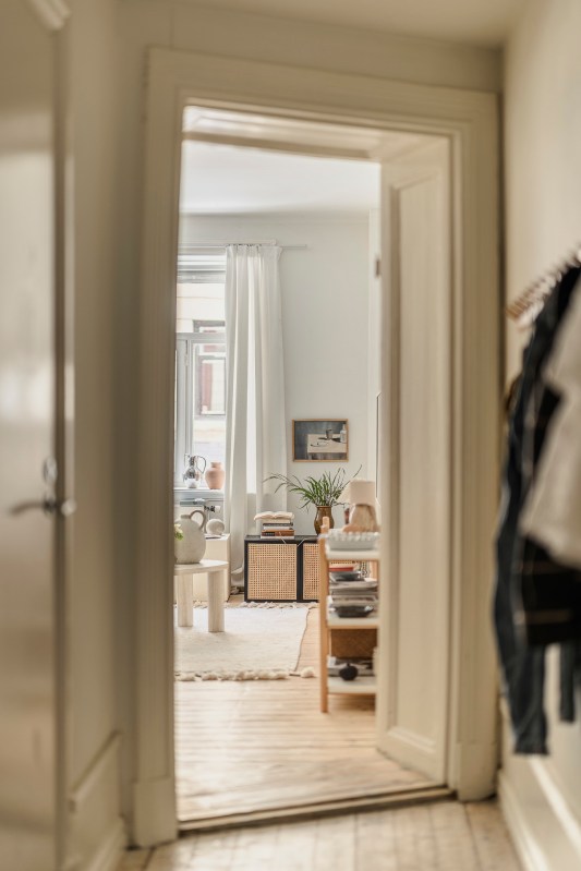 Dans un immeuble chargé d’histoire datant de 1904, cet appartement ancien de 52m2 marie harmonieusement le patrimoine et les aménagements contemporains, créant un espace chaleureux et accueillant. Situé à Göteborg, cet appartement de deux-pièces s’épanouit au sein d’un immeuble ancien soigneusement préservé, où chaque détail raconte une histoire. Dès l’entrée, les moulures hautes, le parquet ancien et les rosaces apportent une touche d’élégance. Le plan a été astucieusement repensé pour favoriser une circulation fluide, maximisant l’espace malgré sa taille modeste. Les fenêtres bien orientées laissent entrer une belle lumière naturelle, renforçant ainsi la sensation d’ouverture. Le salon, accueillant, arbore une large fenêtre sur le petit côté, invitant à se détendre. Les éléments du passé se marient délicatement avec une décoration scandinave actuelle, offrant un cadre de vie chaleureux, fonctionnel et apaisant pour le quotidien. Autrefois un grand studio, la cuisine a été astucieusement scindée pour créer une petite chambre, transformant cet appartement en un véritable espace de vie atypique et unique.