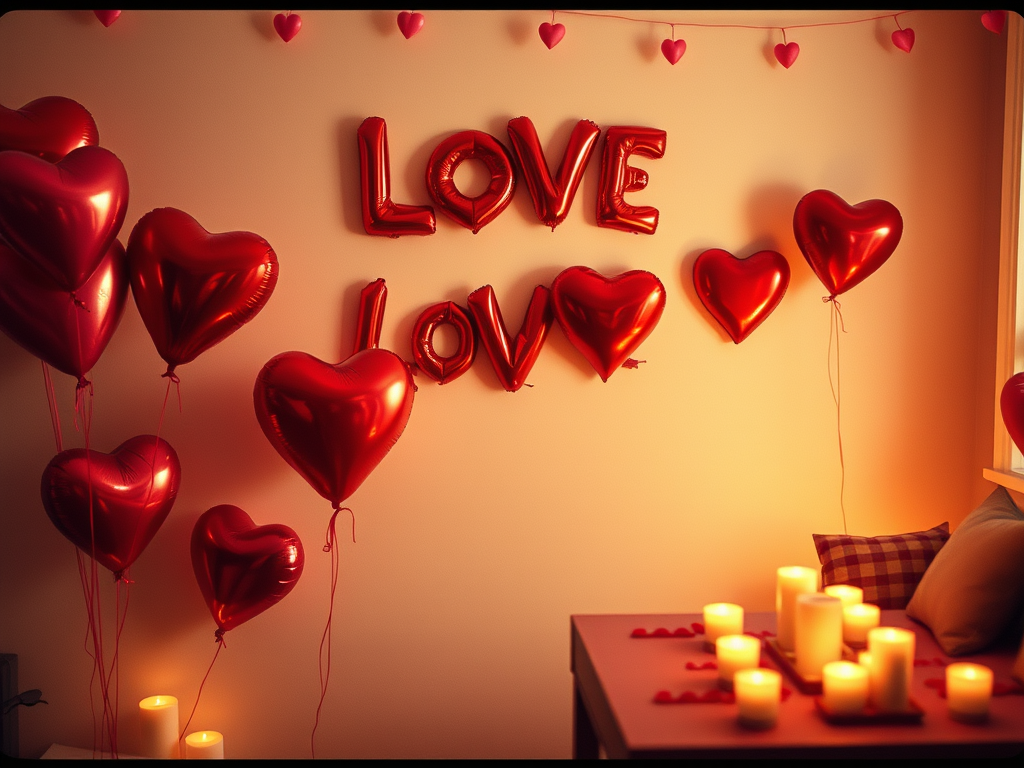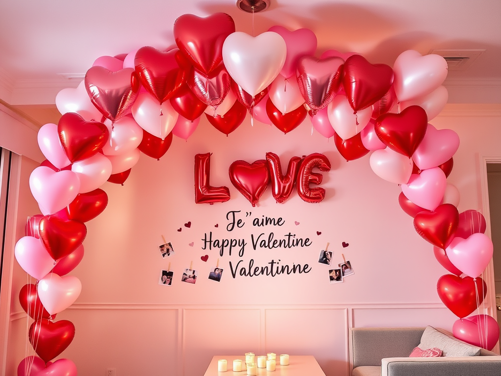 - Ballons rouges/roses (gonflés à l’air pour rester élégant)