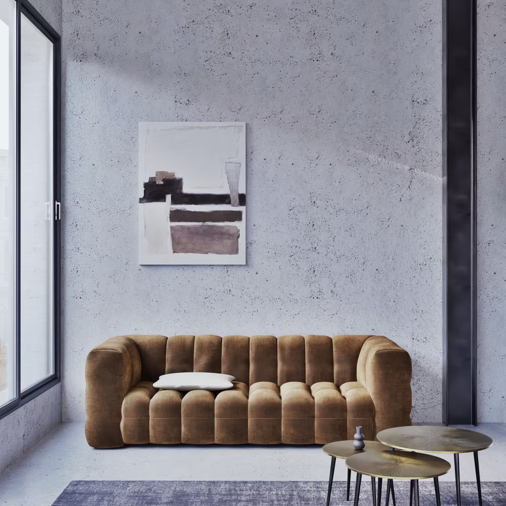 - Canapé nuage 3/4 places beige sable – grand canapé confortable aux tons naturels, parfait pour une ambiance douce et chaleureuse.