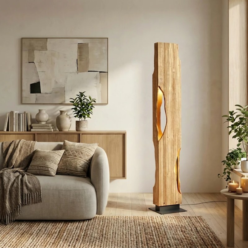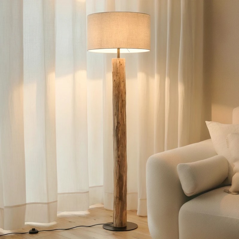 Lampe sur pied Lucande Tarry, bois, hauteur 137 cm