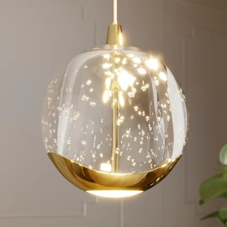 Lucande Suspension LED Hayley, Ø 40 cm, 9 lampes, or, verre