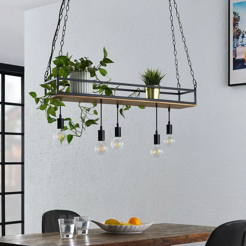 Lindby Suspension Kirista, 5 lampes, noir, bois, 100 cm