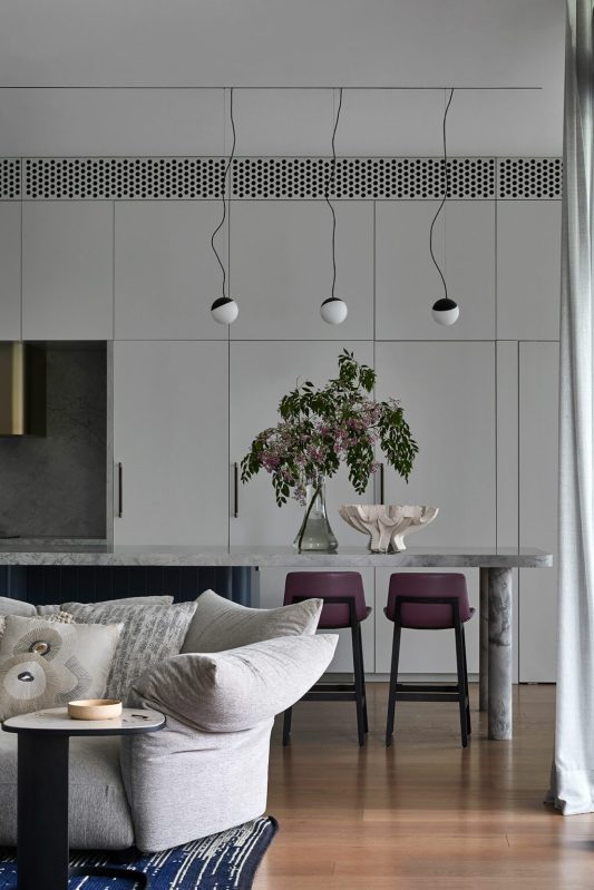 Osant l’originalité et l’inattendu, ses formes sculpturales et ses couleurs vibrantes métamorphosent cette maison de style fédération en une toile de fond contemporaine. Il en résulte une demeure dynamique, ludique et délicieusement fantaisiste.La maison porte toutes les marques distinctives de son époque : hauts plafonds, corniches en plâtre travaillées, vitraux, architraves ouvragées et pièces aux proportions généreuses et à l’atmosphère unique.