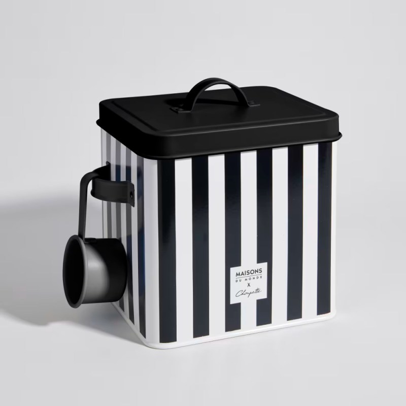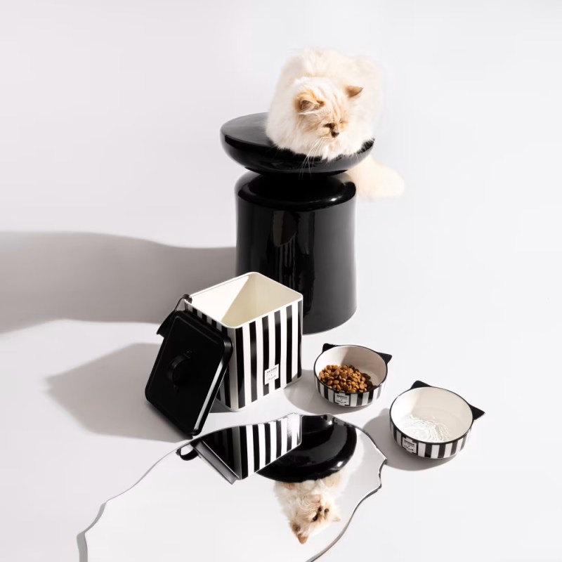 La collaboration Choupette X Maisons du Monde apporte une touche de chic à toutes les maisons qui accueillent des chats. Après tout, nos précieux félins méritent un espace de repas à la hauteur de leur majesté. La marque française joue avec un univers graphique élégant, fait de rayures noires et blanches et de lignes nettes, Il est difficile de ne pas craquer devant ce panier rayé et ces gamelles à la fois pratiques et décoratives, qui se fondent dans la pièce comme de petits objets de design. En d’autres termes, le chat se régale, mais la pièce bénéficie également d’une touche déco raffinée qui ravira les maîtres.