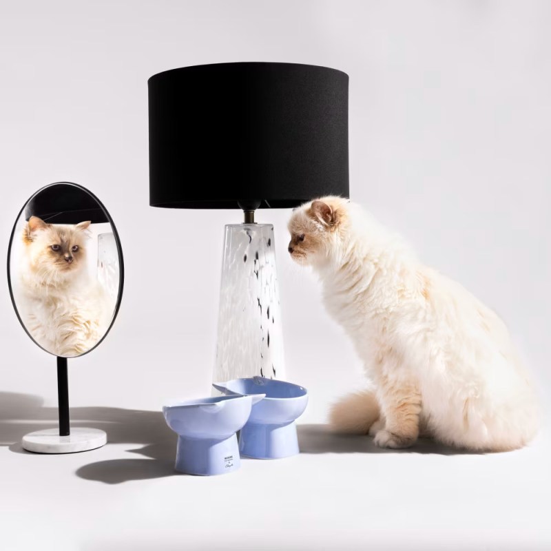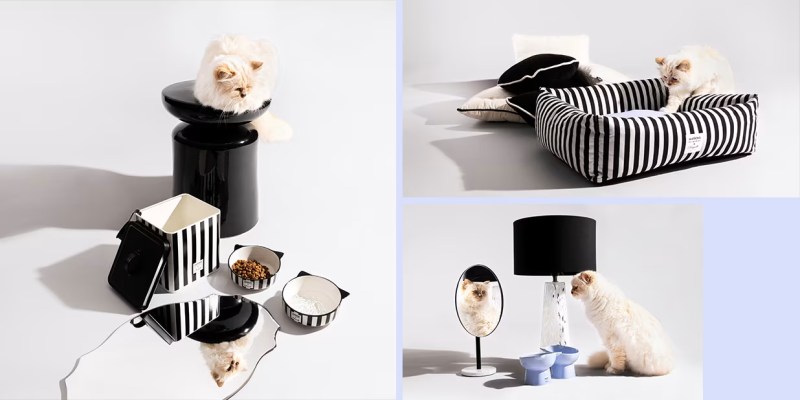 Au fil des années, Choupette est passée du statut d’animal à celui d’icône. Cette collaboration reprend les codes du chic parisien et l’humour du créateur. Le noir et blanc est à la base de cette  collection, avec un motif rayé très graphique. Quelques touches de bleu pastel rappellent les yeux de Choupette et adoucissent le monochrome. Résultat, les accessoires pour chats prennent des airs d’objets déco parfaitement désirables.