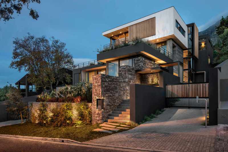 À Cape Town, en Afrique du Sud, une maison par Malan Vorster Architecture Interior Design se trouve entre Devil’s Peak et Signal Hill, dans le creux de la City Bowl. Le terrain en pente donne sur la ville , tout en s’élevant vers le Parc National de la Montagne de la Table aux Etats Unis .