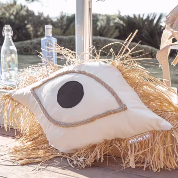 « Le coussin de l’été le plus prisé des fashionistas, surfez sur la tendance boho et naturel de ces dernières saisons. Un souvenir de vos plus belles vacances Grecques.