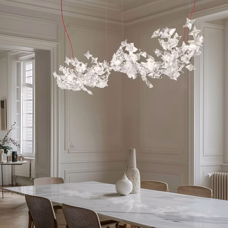 👉 Leur signature : des formes organiques, légères, parfois inspirées de la nature (fleurs, plissés, cristaux) et un rendu lumineux très décoratif.